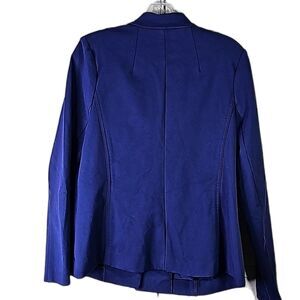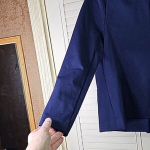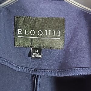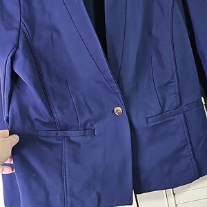 Blazer by Eloquii Navy Blue Goldtone Button Size 14, pit to pit 22", length 25.5", sleeve 24", slight shoulder padding, Stretchy, in good condition.