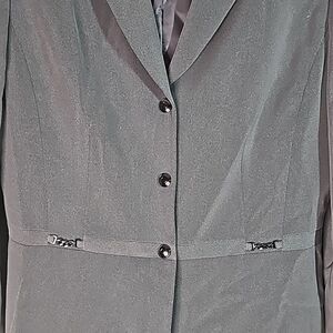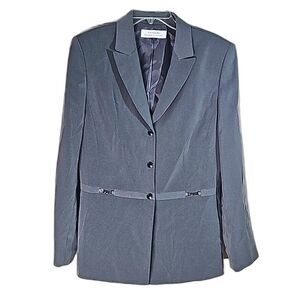 Blazer by Tahari Gray Gun Metal Hardware Snap Front Fully Lined Size 12