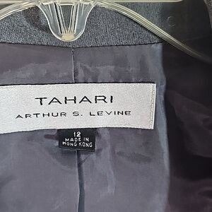 Blazer by Tahari Gray Gun Metal Hardware Snap Front Fully Lined Size 12, pit to pit 23", length 28", sleeve 25", in good condition.
