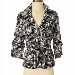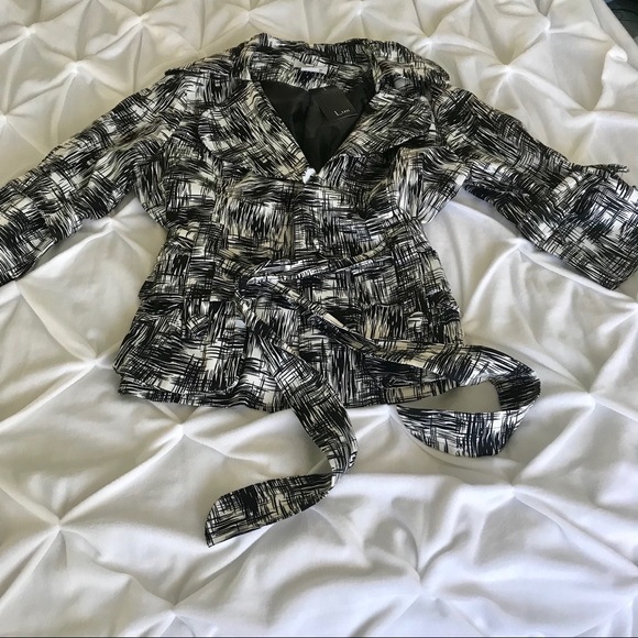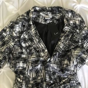 New black/white, 3/4sleeve jacket. Black lining , with belt.