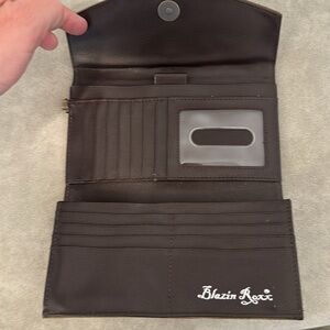 Blazin Roxx Concho Wallet Clutch Wristlet Brown Card Slots Snap Closure