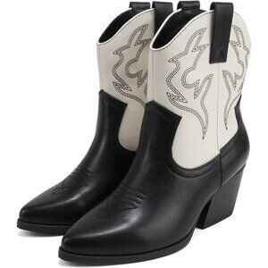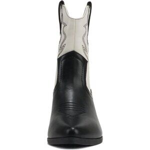 Blazing Ankle Boot Women Black White mitation SuedePointe Toe Low Heel