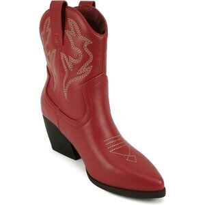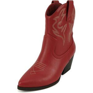 Blazing Ankle Boot Women Red Imitation SuedePointe Toe Low Heel