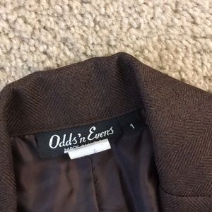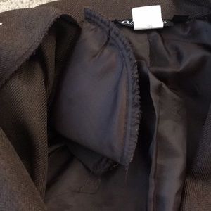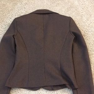 Brown suit fabric blazor very fitted at waist. Flares at hips. In very well condition.