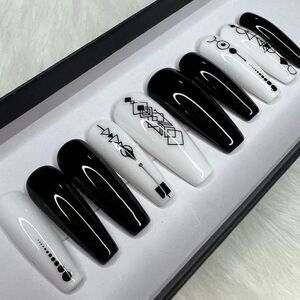 Blck N Wht Geographic Custom Press On Nails | High Quality Nails | Handmade
