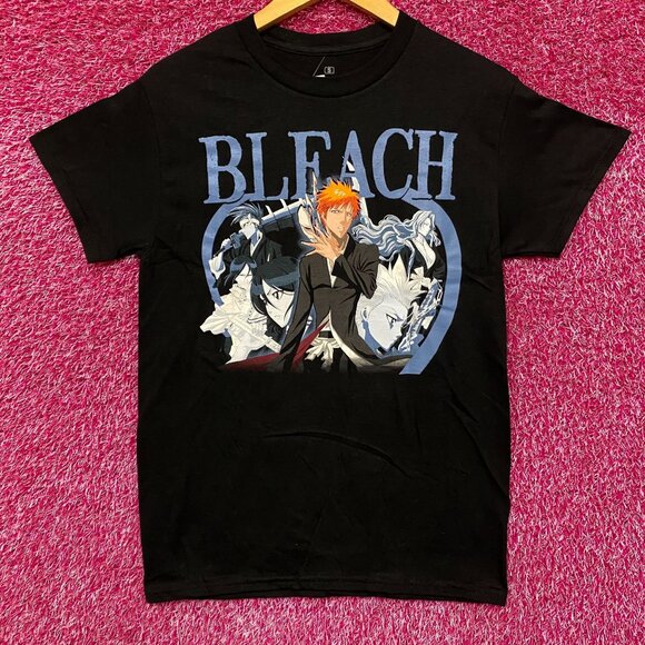 Bleach Ichigo Kurosaki Bankai and Hollow Mask Anime Graphic Design T-Shirt Small.Generally measures 18 inches pit to pit and 27 inches Long. Amazing shirt depicting Ichigo in bankai form with hollow mask, and behind, Rukia, Renji, Toshiro and Rangiku, perfect for Bleach fans. New never worn overstock in great condition