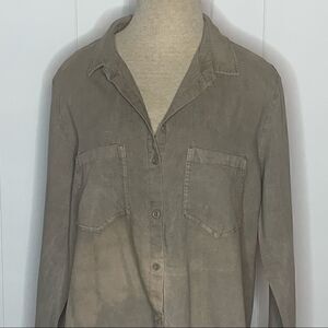 Cloth & Stone Frayed Hem Button Front Bleach Dyed Shirt