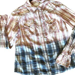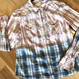 Bleached Shirt, Junior Size Medium: Upcycled Hand Painted Plaid Top