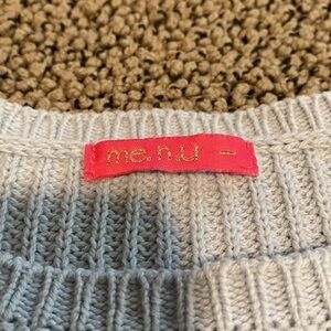 Adorable sweater for the fall. Perfect for back to school. Bleached on the front and back. Side vents and front bottom shorter than the back. Perfect condition.