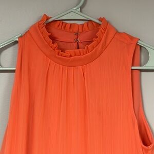 Bleecker 126 Ruffled High Neck Tiered Swing Dress, Medium orange/salmon