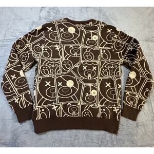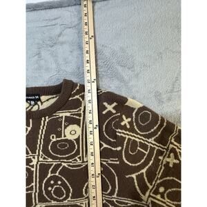 Bleecker & Mercer Sweater M Brown Beige Graphic Bear Face Knit Crewneck Pullover