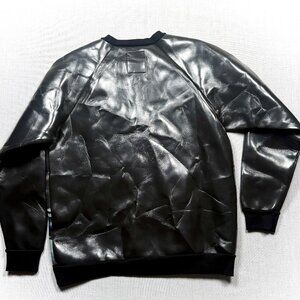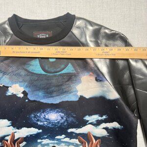 Bleecker & Mercer Sweatshirt Surreal Graphic Faux Leather Black Pullover Size XL