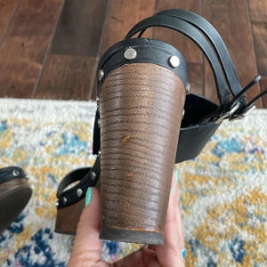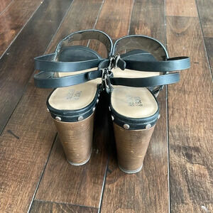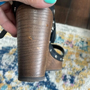 Bleecker and Bond Sandra Leather Wedge Black Studded Platform Sandals Size 10