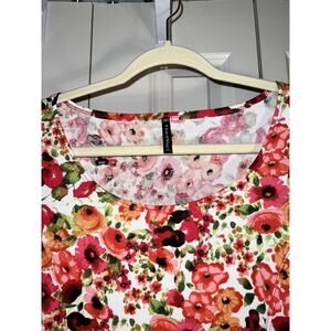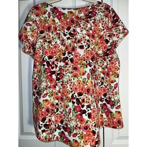 Bleeker & McDougal Women's 1X Red Floral Short Sleeve Shirt