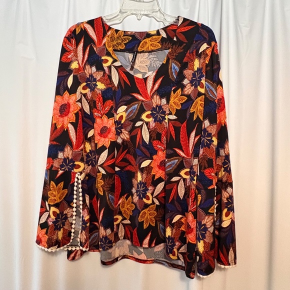 Bleeker & McDougal Women's Long Bell Sleeve Pullover Multicolor Top Large M