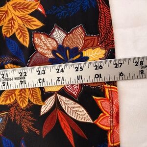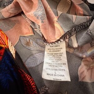 This Women's Long Bell Sleeve Pullover Multi-color Top by Bleeker & McDougal in size Large features a floral pattern with crochet detailing on the edges of the sleeves. Made of 96% poly and 4% spandex, this pullover top has a V-neckline and a collarless design, perfect for a casual, business, or travel occasion. The bell sleeves and regular fit make it a comfortable and stylish choice for the fall and spring seasons, adding a touch of color to any wardrobe.