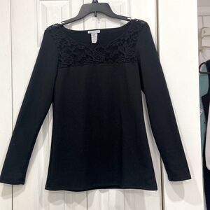 Bleeker & McDougal long sleeve Black flower lace accent top size S