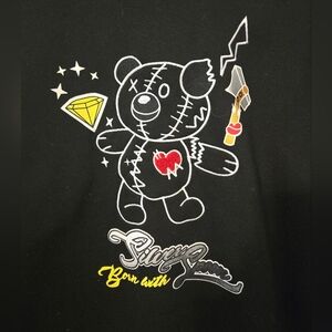 Bleeker & Mercer Bear Born With Silver Spoon Black Pullover Hoodie Mens Medium