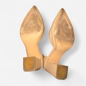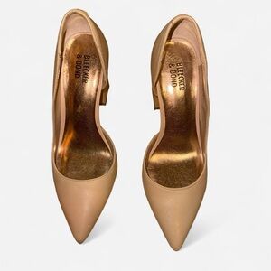 Bleeker and Bond nude/ tan leather closed toe heels pump. Thicker heel = comfy!