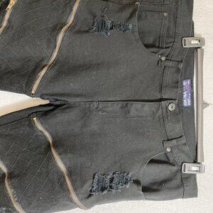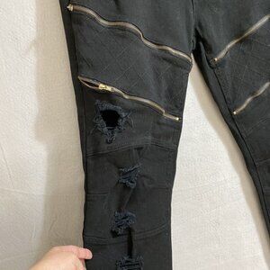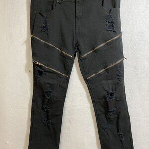 Bleeker and Mercer Moto Men's Jeans Distress Size 40x32 With Rips Zippers Black