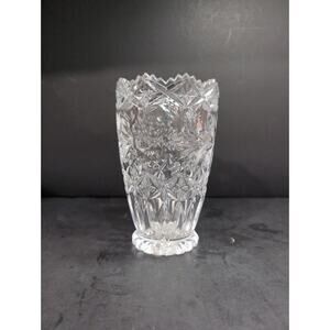 Crafted with timeless elegance, the Bleikristall Crystal Vase stands at 7 inches tall, boasting a mesmerizing saw-toothed design that exudes sophistication. This vintage home decor piece is the epitome of classic charm, adding a touch of refinement to any space. Whether displayed on a mantel, shelf, or as a table centerpiece, this exquisite vase commands attention and elevates the ambiance of a room. Its intricate details and sparkling crystal material make it a statement piece that effortlessly catches the light and enhances its surroundings. Treat yourself to a piece of history with this stunning crystal vase that seamlessly marries vintage allure with modern elegance. A true testament to craftsmanship and style, this vase is a must-have for those who appreciate the beauty of bygone eras.