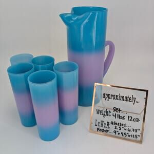Blendo Bermuda Twist Pitcher Set Blue Purple Glass VTG 1950 Blenko West Virginia