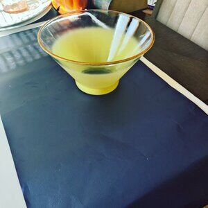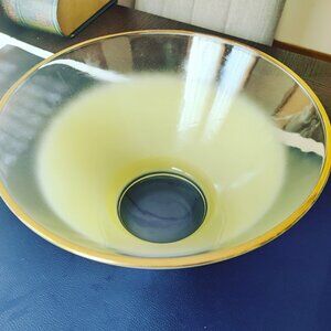 Creamy Yellow Ombre Blendo Salad Bowl. 5.75" tall 10.75" Diameter. Vintage from the 1950's. Gold rimmed across top. Versatile, and used for punch, popcorn or fruit display. This piece is in great condition with some wear to the gold rim, but no fading, or chipping.