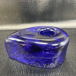 Blenko Candle Holder Tear Drop Taper Candle Holder Single Cobalt Blue Heavy VTG