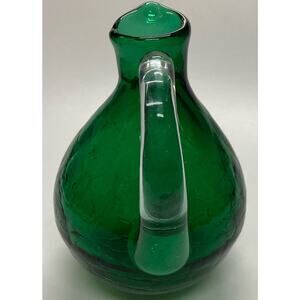 Blenko Green Art Glass Crackled Small Pitcher Clear Handle