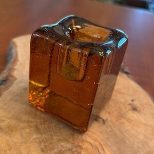 EUC. Blenko Ice Cube Amber Glass Candle Holder. Measures 2" Square.