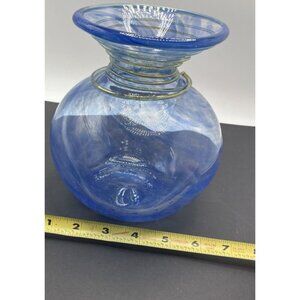 Blenko Spiral Swirl Vase Marbled Blue/Clear and Gold Swirl on neck