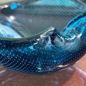 Blenko Vintage Cobalt Blue Controlled Bubble Art Glass Bowl or Ashtray