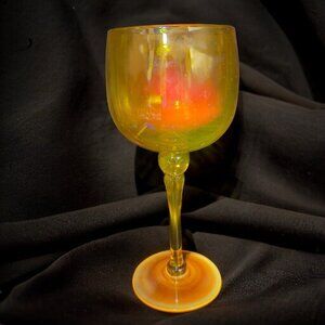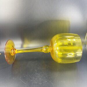 Blenko Yellow Hand Blown Sniffer Footed Goblet Compote Cadmium UV Glowing Glass