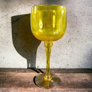 Large Yellow Hand Blown Sniffer Footed Goblet Compote Cadmium UV Glowing Glass