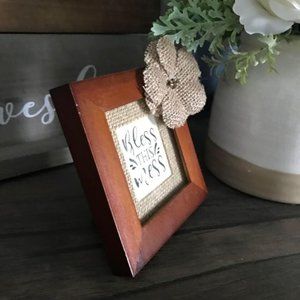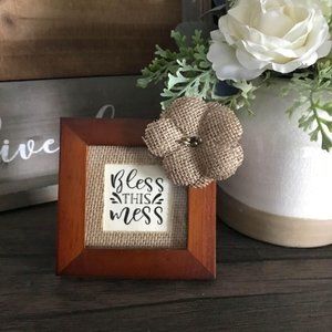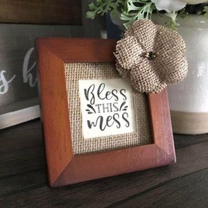 “Bless this Mess” In New Walnut Frame with Rustic Burlap Mat (Version 1)