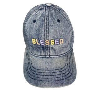 Blessed Ball Cap Pastel Rainbow Acid Wash Denim Look Blue Adjustable Strapback