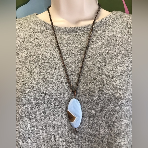 ✨Slightly curved agate slab charm, faceted glass bead, brass chain, brass lobster claw clasp closure.