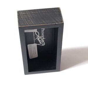 Sign is made of wood and is distressed to give that vintage look we all love. They are flat on the bottom to be placed any shelf and the back is open so they are easy to hang. Each measures 3 inches long by 1.75 inches wide by 5.5 inches tall. The black and white color scheme matches any home decor, making it a great gift item.