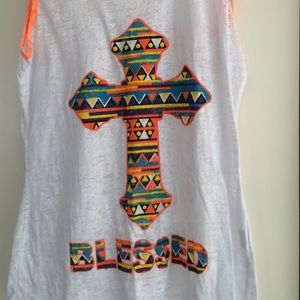 White/neon trim blessed cross tank