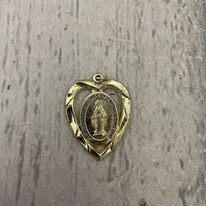 Blessed Virgin Mary Heart Shape Gold Tone Metal Necklace Pendant