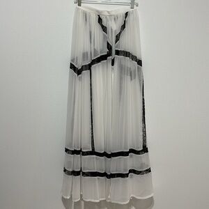 Blessed are the Meek Turn to Gold White and Black Lace Maxi Skirt in size 2. New with tags. Never worn or used. One thread is snagged, not an eyesore or noticeable unless very closely inspecting.