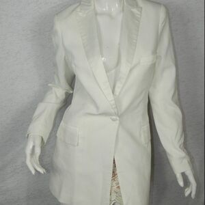 Blessed are the Meek White Tuxedo Oversize Blazer Size 4 Satin Trim on the Collar and Pockets Blazer