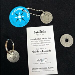 Set of Blessing Key Rings with gratitude theme. Includes 2 keychain and a pocket token. Made of pewter.