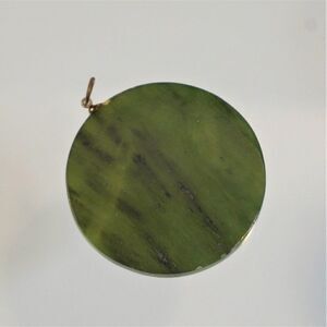 Blessing Large Jadeite Etched Pendant Oriental Circular Flat Vintage Feng Shui