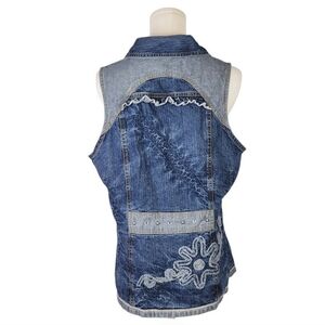 Bleu Bayou Embellished Denim Vest L Western Y2K Boho Rhinestone Zip Up