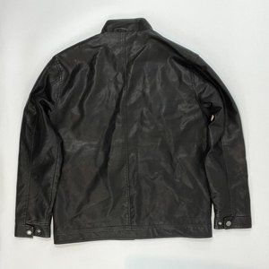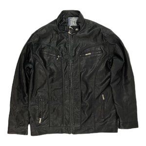 Bleu Grandeur Men's Black Faux Leather Lined Moto Jacket, Front zip Up and Front Zip Pockets. Shell-100% Polyester with PVC Coating, Lining-100% Polyester