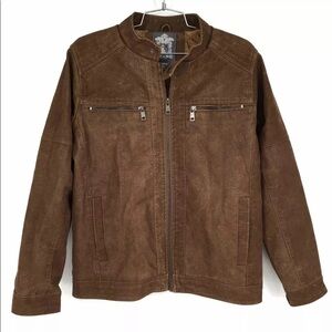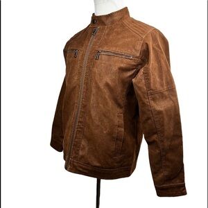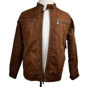 Bleu Grandeur Men’s Brown Faux-Leather Bomber Jacket