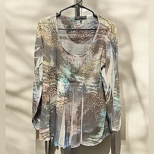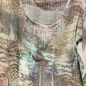 Elevate your wardrobe with this stylish women's top. Featuring a blend of brown, cream, and gray hues, this top is perfect for any occasion. Enjoy the comfort and elegance of this versatile piece.