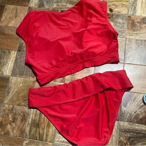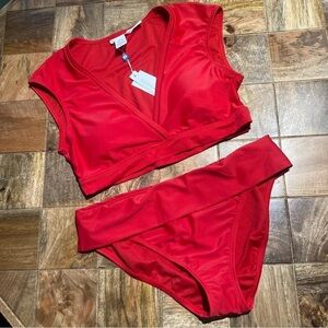 Bleu Rod Beattie Behind The Seams Red Crop Top Bikini Set Swimsuit NWT