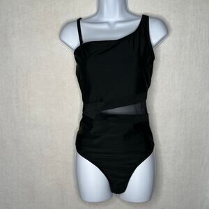 Bleu Rod Beattie Black One-Shoulder Mesh Panel One Piece Swimsuit Size 14 New